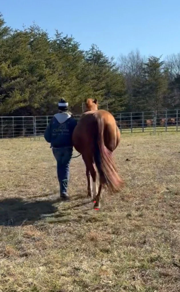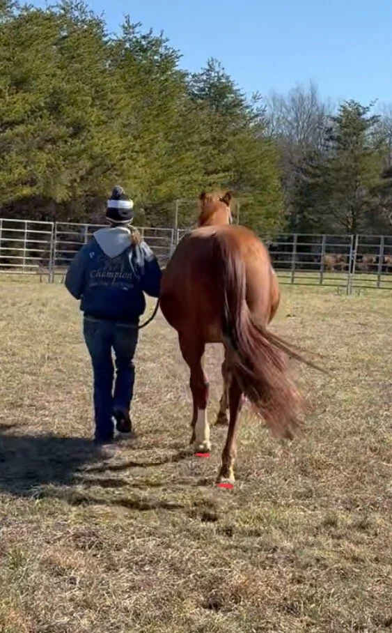 So one of the most obvious things was Hottie’s change in behavior when asked to trot - that angry face we saw in the stall came right back. We can also observe: